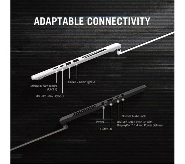 Offers USB Type-C x2, USB 3.2 x2, HDMI 2.1 x1, and a 3.5 mm audio jack for a variety of connectivity options