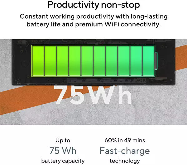 Dual-band AX WiFi 6E and Bluetooth 5 for reliable connections.