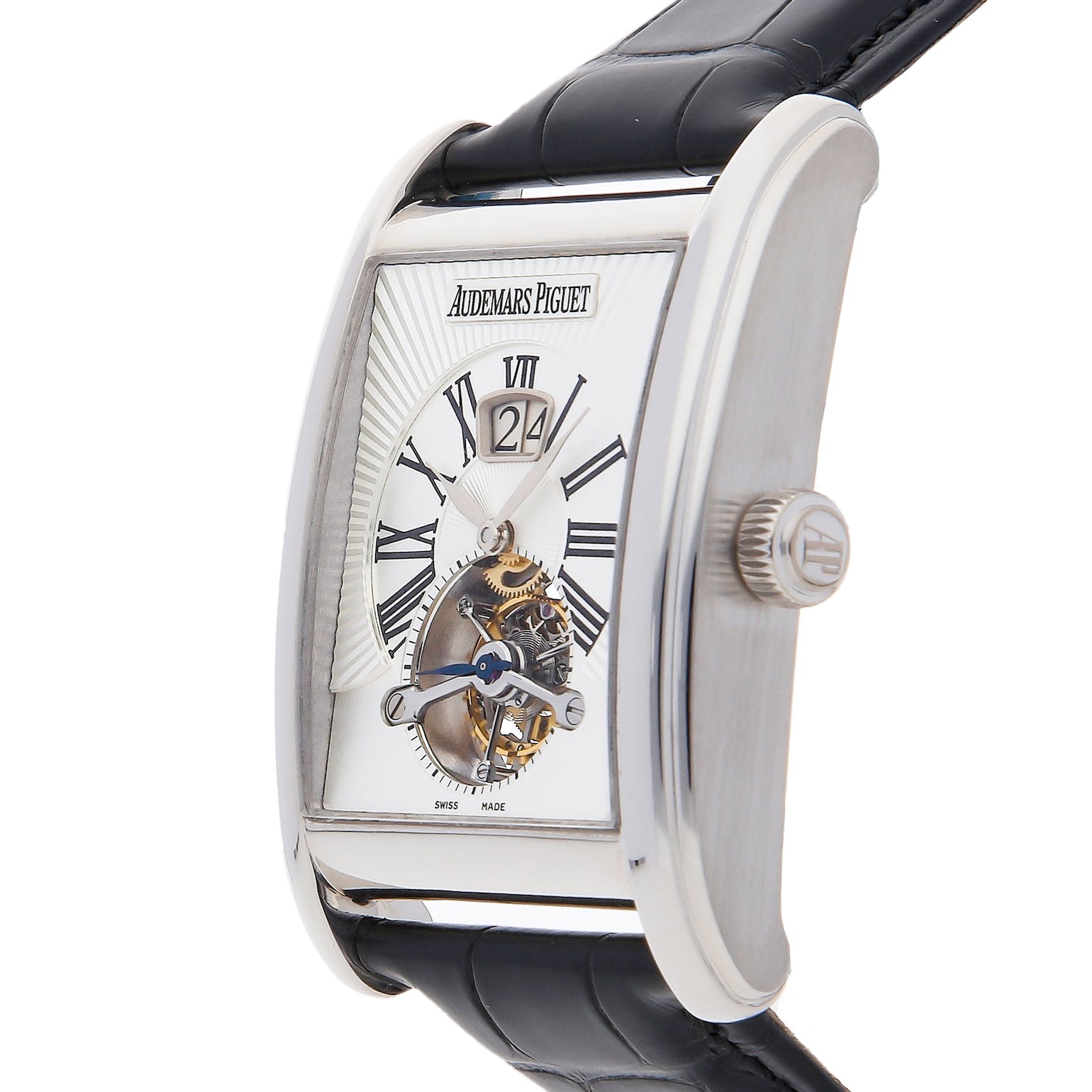 A 34x51mm case of white gold, meticulously crafted in Switzerland in 2016