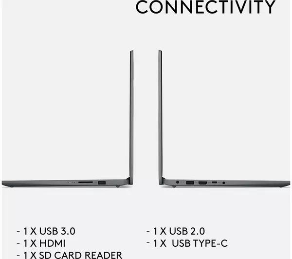 Ports: USB Type-C x 1, USB 3.2 x 1, USB 2.0 x 1, HDMI 1.4b x 1, 3.5 mm jack x 1, Memory card reader (4-in-1)