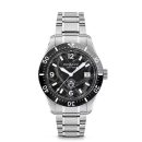 Boasts an eye-catching iced sea black dial complemented by sophisticated silver-tone hands and hour indicators