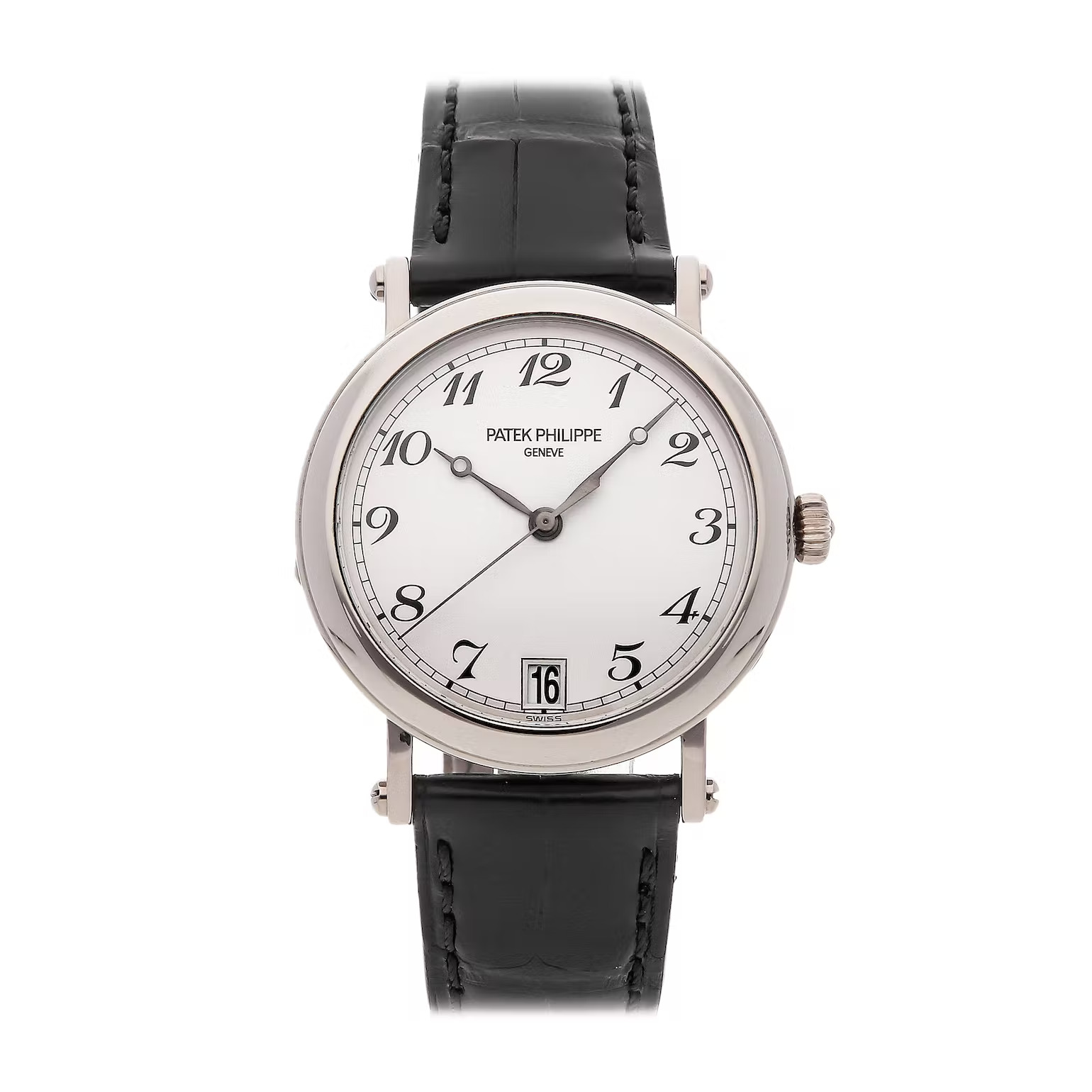 Refined silver face with Arabic numerical detailing