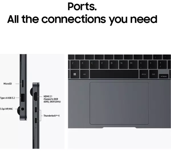 Ports: Thunderbolt 4, USB 3.2, HDMI 2.1, 3.5 mm jack